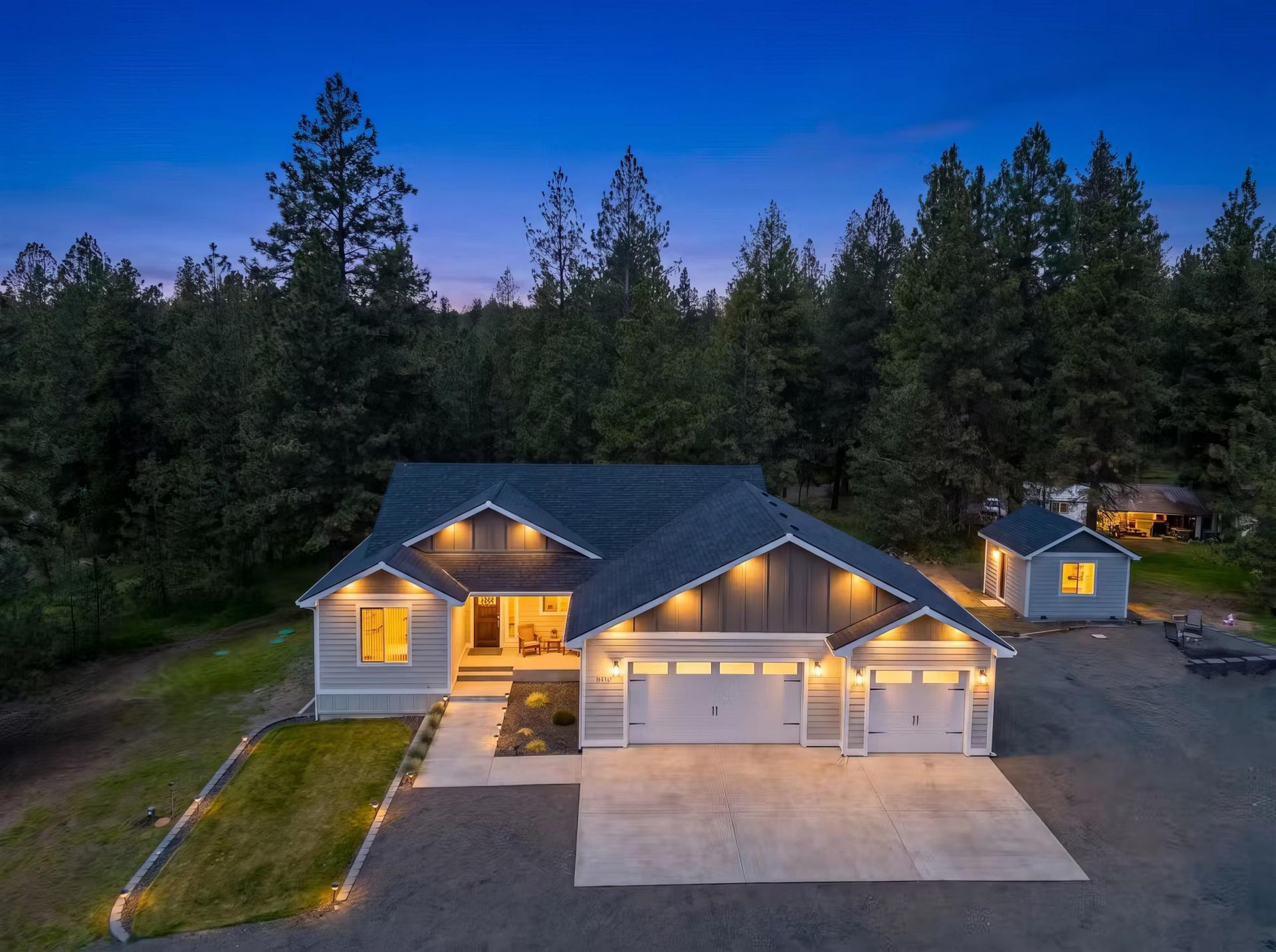 Experience peaceful acreage living in the highly sought-after Freeman School District. Better than new, this beautifully designed rancher boasts an open-concept layout highlighted by 9-foot vaulted ceilings, a cozy wood-burning fireplace, and large windows that flood the home with natural light and bring the outdoors in. The heart of the home is the gourmet kitchen with quality finishes! Outside, enjoy true Northwest living with a large covered patio and an expansive Trex deck, perfect for relaxing or hosting gatherings. The property is beautifully landscaped and features a sprinkler system, fire pit, and is surrounded by trees for added privacy! With future expansion in mind, the property includes a 1,000 sqft 3-car garage, and is equipped with a 50-amp RV hookup, 400-amp panel, and prewiring with conduit for a future shop! The 8ft crawlspace adds incredible future potential! Located just minutes from scenic hiking trails, outdoor recreation, and nearby lakes!