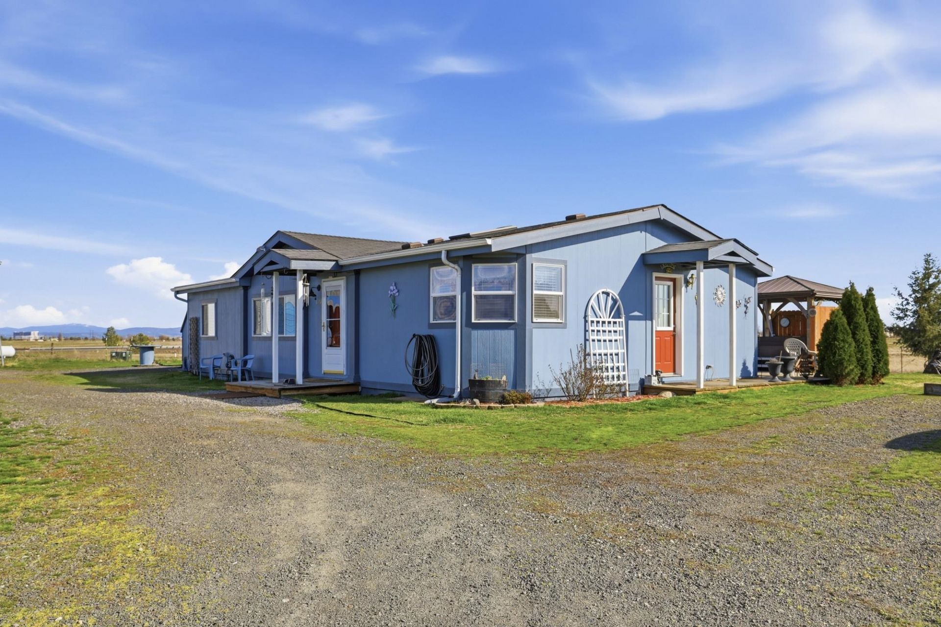 Beautiful mountain views for miles from this well maintained 3 bedroom 2 bathroom 2001 manufactured home on 10 acres. 24 X 36 shop and two carports or tractor storage. Shop has a car lift, loft area, power and concrete floors. The home has a hard wired generator that runs on propane heat pump reverse osmosis system. There is a greenhouse, shed, pump house and the front yard has a sprinkler system. The backyard has an above ground pool (10 X 14) curtained Pergola, Hot tub covered by a gazebo and a very cool sitting area. Property is fenced and cross fenced making it perfect for horses. The grounds have many trees, plants and flowers. The kitchen has newer appliances, skylight and washer and dryer stay. Fresh paint and new carpet thru out. The master bathroom has double sinks and large garden tub. Close to Spokane, Fairchild Airforce base and Airway heights. Gorgeous 360 degree views. Location is in highly sought after Cheney school district. Located on a private dead end road.