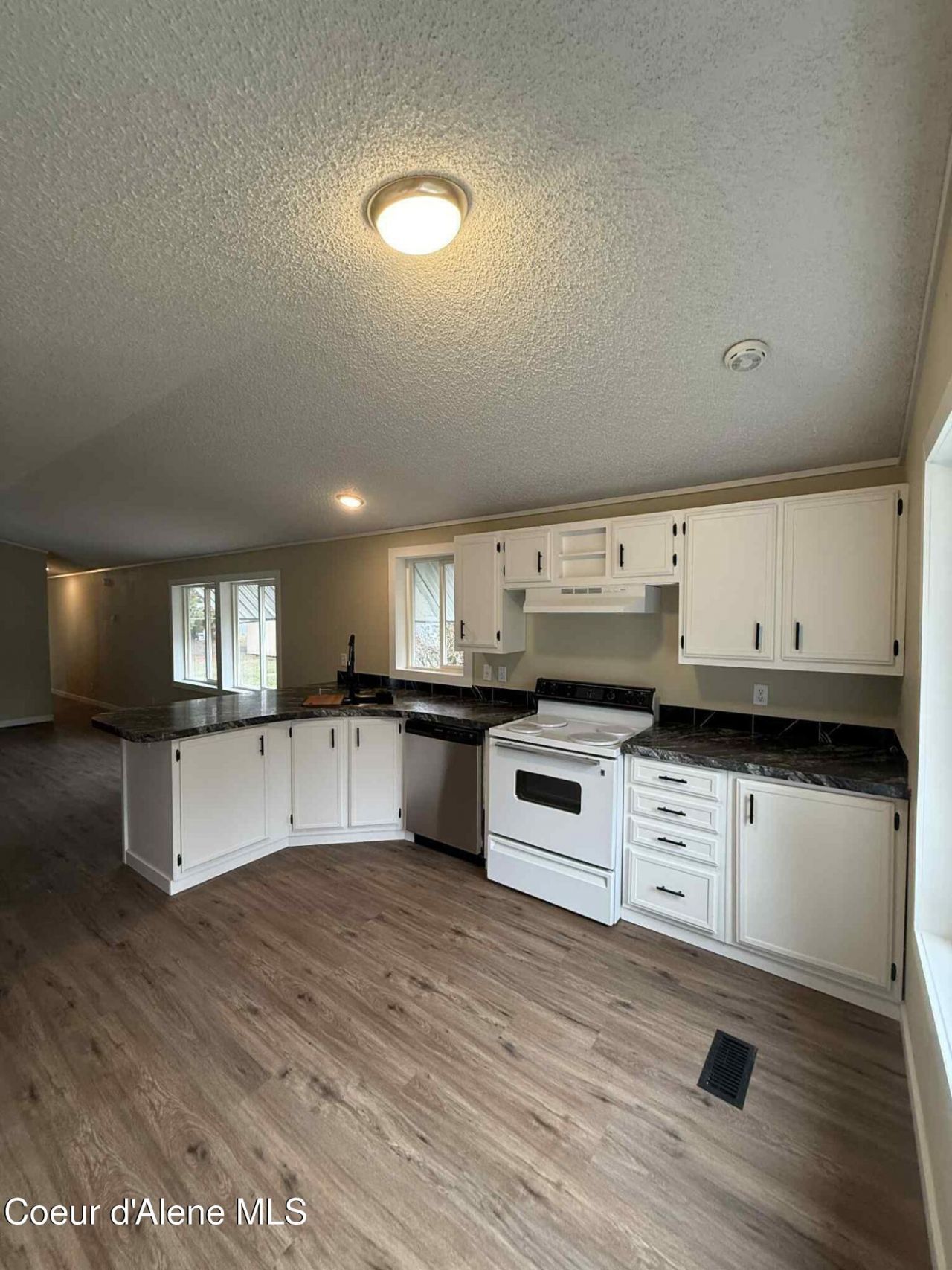 2 bed 1 bath home with new: LVP flooring, interior paint, kitchen sink, dishwasher, bathtub/shower, counter tops, baseboard and trim, lights, toilets, needs new owner.