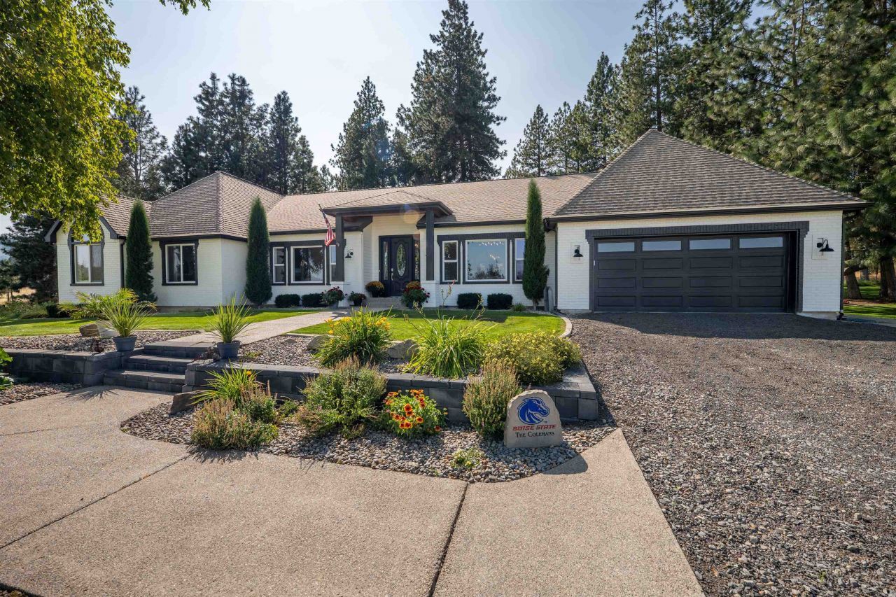 Exquisite estate set on 15 serene acres surrounded by forest and open views giving you the feeling of a private retreat. Farmhouse elegance meets modern sophistication in this completely remodeled custom single level home. Soaring ceilings and a stunning open concept highlights the gorgeous gas fireplace and chefs dream kitchen featuring smart tech appliances and walk in pantry. Entertain on the back covered deck while watching the abundant wildlife. 2 bedroom remodeled guest home will welcome friends and family or bring in rental income. Wedding venue opportunity. Bring your horses or livestock! Large 5 stall barn with hot wash rack, tack room, 4 cross fenced pastures and an outdoor riding arena. Excellent boarding potential. This gorgeous property is fully landscaped and includes a chicken coop, livestock shelter, raised bed fenced garden, outdoor riding arena, fruit trees, RV pad with electricity and has hosted a handful of weddings. Only 15 min to shopping in spokane. The possibilities are endless.