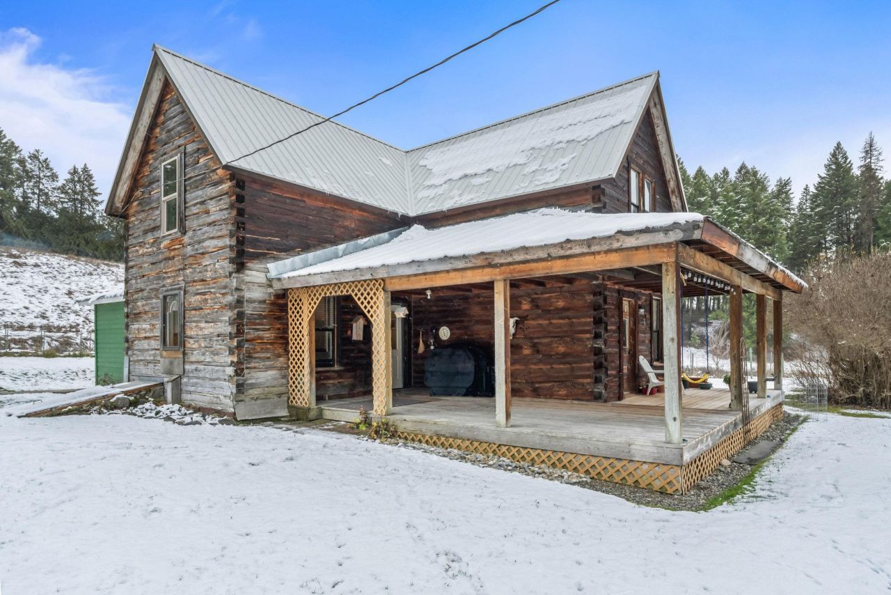 Discover this incredible 113-acre (3 parcels) property featuring a charming, historic 1915 log farmhouse with 3 bedrooms and 2 bathrooms. This is the ultimate retreat for self-sufficiency and privacy! The home is heated year-round by a cozy wood boiler and has a wood stove just incase needed. Water security is assured with two systems: a unique spring-fed water system with a holding tank provides year-round drinking water, and there is an additional 20+ GPM well located on the 15+ acre parcel. This southern facing property is set up for serious farming! It includes a large 2400 square foot feeder barn, a chicken coop, a dry cabin with power and wood stove and numerous storage outbuildings. The acreage has previously provided hay, offering potential for income or self-sustained feed. The 42 acre parcel is mostly treed with mature Fir and Tamarack timber.