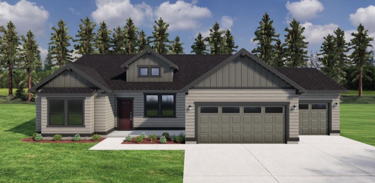 At 2046 square feet, this Snowbrush is an efficiently designed, over-sized rancher offering both space and comfort. This home boasts a 3 car garage for additional storage and workspace! A covered front porch and covered patio provide plenty of outdoor living space as well. The open kitchen is a chefs dream, with a large island, plenty of cupboard storage and counter space. The vaulted ceilings in the expansive living room and adjoining dining area complete this eating and entertaining space, with a large span of windows throughout those rooms bringing in plenty of natural light. The primary bedroom feels spacious with vaulted ceilings, and connects to a dual-vanity bathroom, separate walk-in shower and soaking tub, private water closet, plus large walk-in closet. The other three sizable guest bedrooms share a second bathroom with a dual vanity. Cozy up with a good book and enjoy sitting in the front bedrooms window bench! *Stock Photos - home estimated completion in fall 2026.