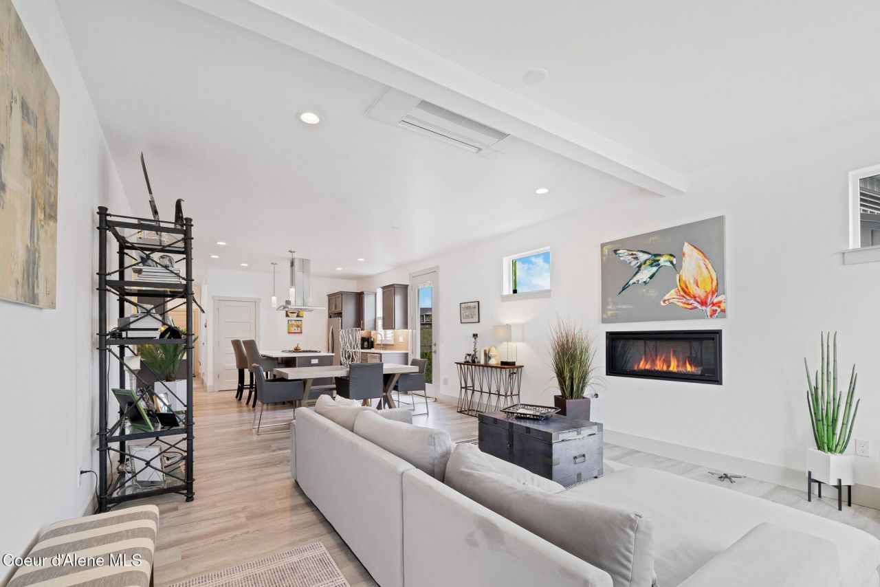 Welcome to this beautifully maintained 2-bedroom, 2-bathroom townhome in the heart of the Atlas Waterfront neighborhood. Located directly across from the park, this home offers picturesque river views and easy access to the Centennial Trail, local restaurants, and waterfront activities. Inside, you'll find a light-filled layout with quality finishes throughout, including radiant floor heating, quartz countertops, and a cozy gas fireplace.Upstairs, the serene master suite is a true retreat?complete with a private balcony offering river and mountain views, a luxurious tile shower, and a spacious walk-in closet. A versatile loft adds extra space for a home office, media room, or cozy lounge space. Outside, enjoy a low-maintenance fenced yard and convenient alley access.Combining comfort, style, and a prime location, this home is a perfect blend of modern living and North Idaho charm.