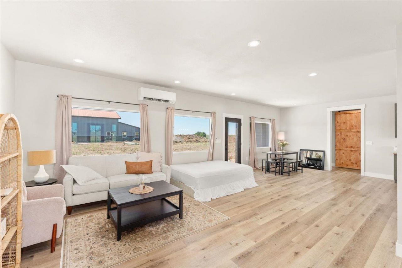 Sleek, stylish, and brand new, this 3 bed, 2 bath rancher offers the best of both worlds: refined modern comfort paired with the ease and quiet of country living. Walking in, youll be greeted by an open-concept design flooded with natural light, anchored by a gorgeous kitchen with warm butcher block counters, and a center island perfect for casual meals or friendly gatherings. The seamless flow from kitchen to living and dining spaces makes everyday life feel effortless. The primary suite offers a peaceful retreat, a large walk-in closet, and a private ensuite bath. Every room is thoughtfully designed with high-end finishes and a clean, contemporary style. Outside, nearly 1.5 acres of open land stretch around you, offering room to garden, explore, or just enjoy the quiet. A covered back patio gives you the perfect place to take in sweeping views, glowing sunsets, and big skies. Located just a short drive from town, you get the feel of simple, small-town living without being too far from amenities.