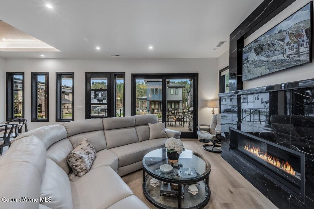 Experience luxury living in the desirable Atlas Waterfront community, showcasing exceptional attention to exterior and interior detail. This newer 3-bedroom home, completed in 2023 and meticulously cared for, features two master suites and two spacious family rooms. The gourmet kitchen presents top-of-the-line appliances and high-end finishes designed for both gatherings and relaxed everyday living. Vaulted ceilings create abundant natural light, with custom remote control blinds for added convenience. The generous upstairs family room includes a wet bar. Enjoy views of the river while entertaining on the covered patio featuring a built-in gas grill and built-in gas firepit. Quality upgrades include radiant heated bathroom floors, walk-in pantry, slab-on-grade construction and an epoxy-finished garage floor. Privately situated on a quiet street tucked away from busier roads. Enjoy easy walking access to the Spokane River, Kroc Center and minutes to Riverstone.