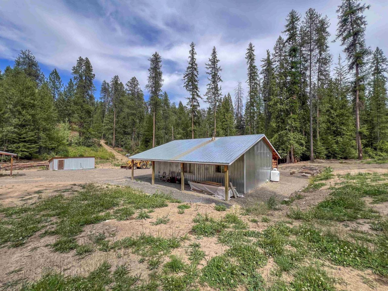 The perfect Get-a-way! Situated on just over 5 acres, this property has seclusion, easy access, timber, and a extremely well built shop/house with multiple outbuildings! Inside the shop, you have a large open floorplan for a living area, with swinging doors in place for toys. A partial kitchen/bar area is in place and a nice Quadra Fire stove to keep you warm! Towards the back of the shop you will find a nice sized bedroom, full bathroom, and utility/laundry room. Radiant Floor heating is in place, just needs hooked up to a water heater/boiler! Outside, you have a nicely landscaped area that is ready for your final touches. Plenty of area to build your dream home, or finish out the current quarters! Well and power have been redone and certified, and numerous loads of new gravel! Surveyed!