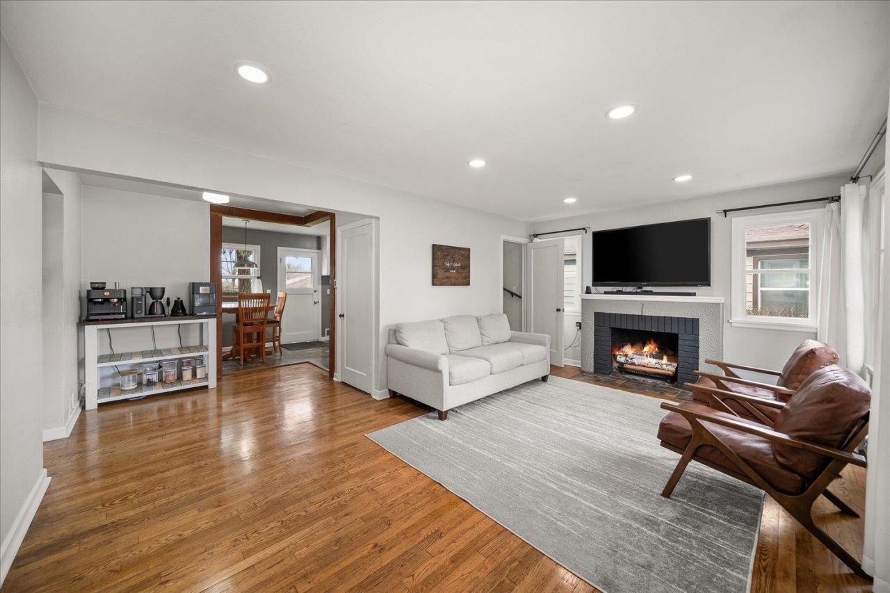 Adorable, bright, and charming Northside bungalow featuring fresh, tasteful updates throughout. Beautiful hardwood floors shine throughout the main living areas, complemented by updated tile flooring and stylish backsplashes in both the kitchen and bathroom. The versatile upper level offers great flexibility?perfect as a loft bedroom, bonus space, or cozy man cave. Downstairs, the clean and spacious basement features updated lighting and unique tongue-and-groove accents. Additional highlights include central air conditioning, low-maintenance vinyl siding, and vinyl windows. Outside, the yard has been thoughtfully landscaped with a sprinkler system and designed with a kid-friendly layout. Parking is plentiful with a large carport providing extra covered space in addition to the oversized one-car garage. Dont miss this move-in ready home!