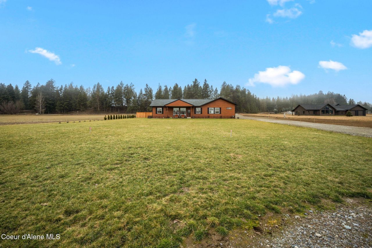 Beautifully crafted custom 4 bd 2 bath home situated on 5 level acres with southern exposure in the desirable Moyie Springs area. Thoughtfully designed residence offers 9-foot ceilings, an open floor plan, and stunning mountain views from every room. Home features custom knotty hickory cabinetry and trim throughout, premium 3/4'' x 3 1/4'' hardwood flooring, and tile flooring with waterproof liquid rubber membrane in the kitchen, dining area, and bathrooms. Wide 36'' six-panel interior doors provide easy handicap access, complemented by a main ensuite with a handicap-accessible shower, 26x36 3 car garage. Enjoy cozy evenings in the living room by the natural gas fireplace while taking in expansive mountain views. York central heating and air system, underground sprinklers, and is connected to the 3 Mile water system. Large fenced backyard, raised flower beds, 12x 16 insulated/sided storage building. Too much to list!