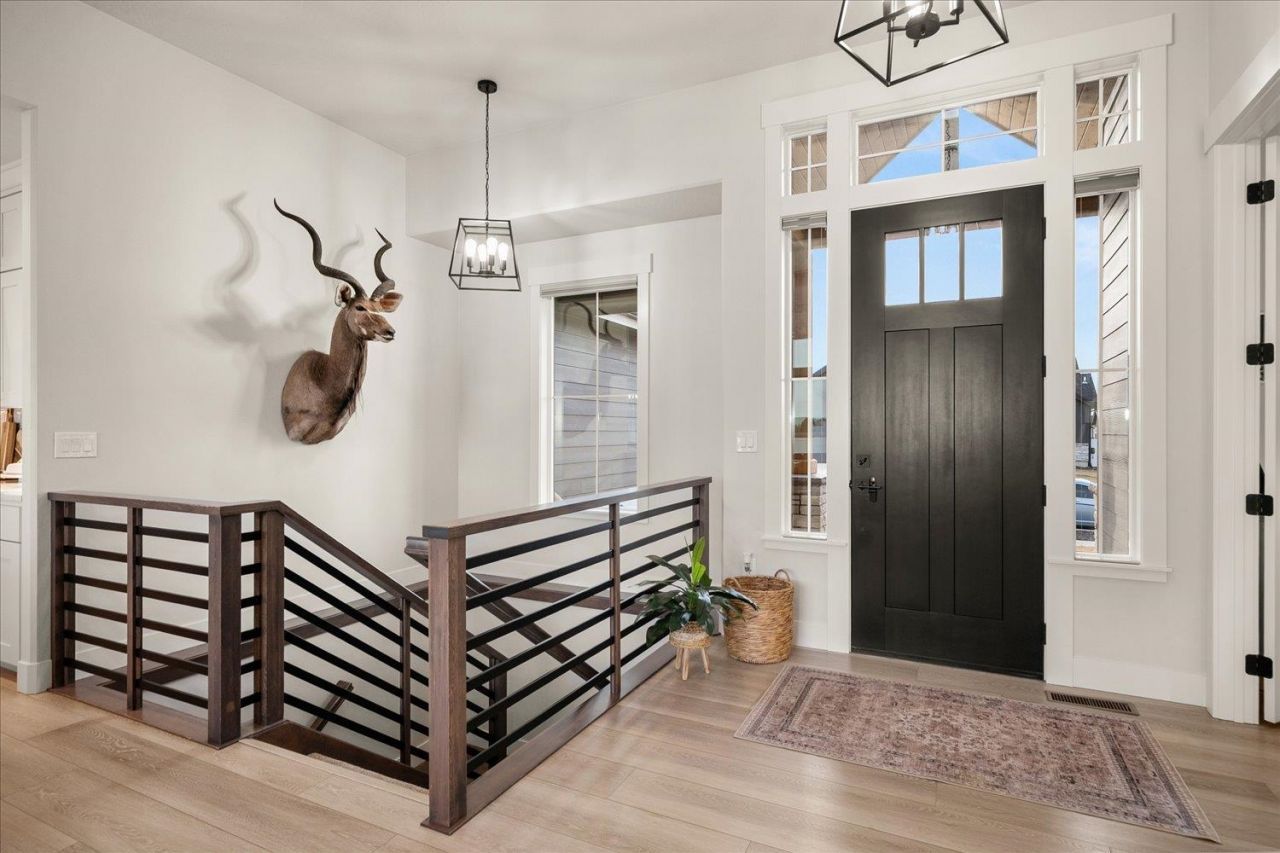 Welcome to this stunning contemporary farmhouse in the highly desirable Five Mile Estates. This beautifully designed home offers approximately 3,700 square feet of thoughtfully crafted living space with 5 spacious bedrooms and 3 bathrooms. The open and airy floor plan is highlighted by soaring 11-foot ceilings in the great room and a striking masonry gas fireplace. The chefs kitchen features quartz countertops, ample cabinetry, and a generous walk-in pantry?perfect for entertaining or everyday living. The primary suite is a private retreat with a luxurious en-suite bathroom, double sinks, and a spacious walk-in closet. The fully finished basement adds two bedrooms, a large great room, and a custom bar?ideal for hosting or relaxing. Outside, enjoy a covered back patio and open backyard with a newly laid stone patio and built-in gas fire pit. A brand new 20x30 shop with a 12-foot door and 14-foot walls, plus RV parking with 30-amp shore power, offer incredible flexibility.
