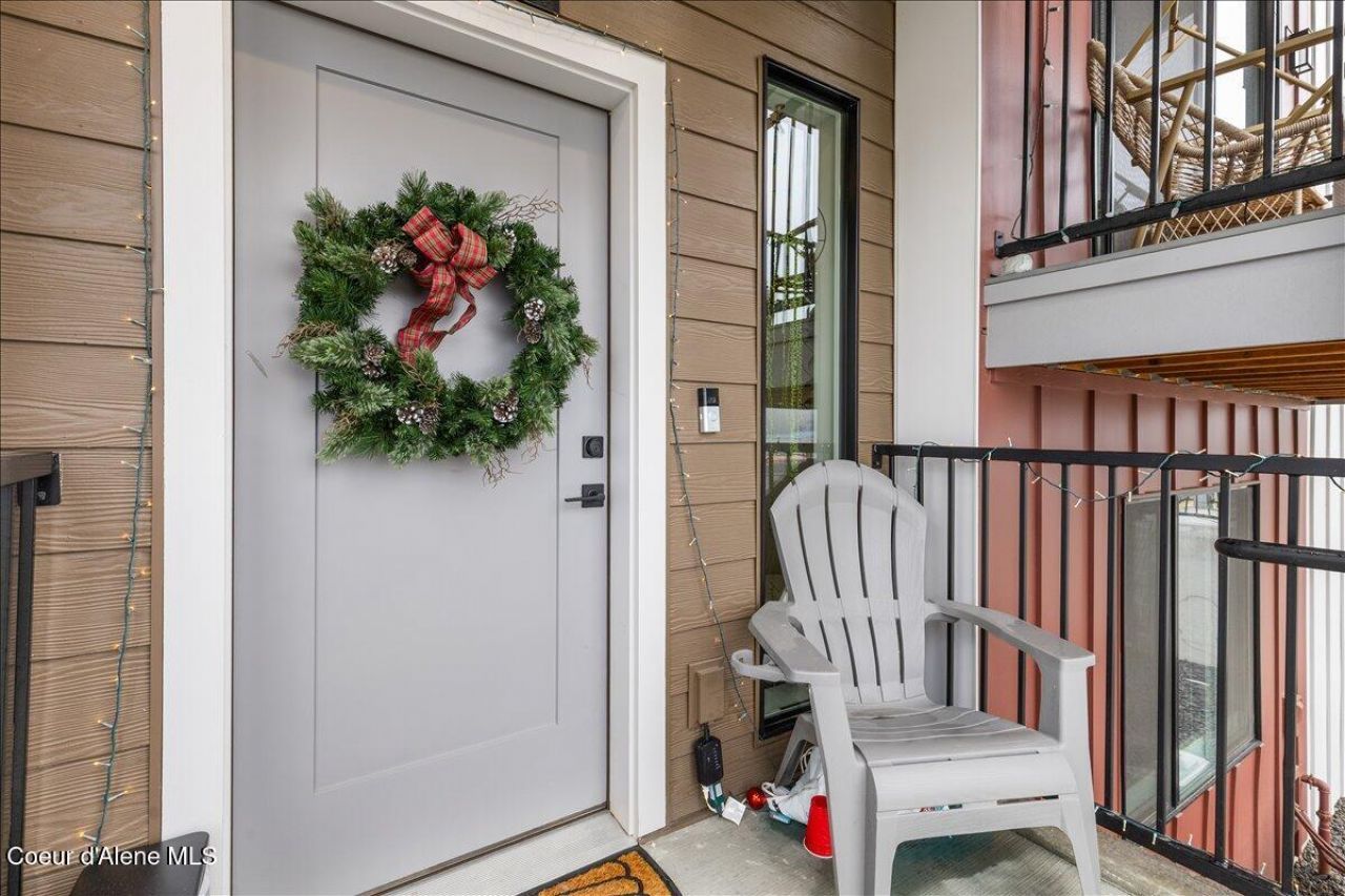Stunning views from this ''like-new'' home, showcasing sleek and modern finishes such as: white quartz counters throughout, white soft close quality local cabinets, and beautiful LVP floors. This home has a walkout balcony off the main living area offering natural light with refreshing views out the oversized slider door. Vaulted ceilings in the living room/entry make for an expansive, open feel. The Primary Bedroom has a generous walk-in closet and quartz oversized vanity and a tiled wall shower. The front door opens to community greenspace with garden, dog park, paths and landscaping that's HOA maintained! This condo is in a mixed-use community, providing a perfect blend of urban convenience & small town charm. You'll be a short walk from coffee shops, restaurants, a new bookstore/bistro, grocery/delis, marinas, and waterfront parks. Right off I90, 12 minutes to CdA; 24 to Spokane!