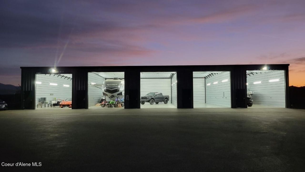 Discover the epitome of elite commercial luxury with our versatile Commercial Condos located within the GATED and highly secured Phase 2 of LOCKED AND LOADED GARAGE CONDOS... 32 UNITS TOTAL. Boasting customizable sizes ... 25x50, 25x100, 25x60, and l00x100. Each unit offers superior comfort which includes a complete build out, R-32 ceiling insulation, R-19 insulation in walls, R-19 16'x14' insulated door, an efficient 125,000 BTU gas heater, ample LED lighting throughout, advanced Z-WAVE security technology, 100 AMP panel, and ceiling fans. (200 AMP panel/Phase 3 power available in select units) Step into a world of opulence with access to the Owners only clubhouse, featuring a golf simulator, pool table, private locking liquor cabinets, lounge/bar area with TV and fireplace, a large conference room complete with Wi-Fi, printer/scanner, additional private offices restrooms, and a full kitchen. Conveniently located near the Idaho-Washington border. PRE SALE HAPPENING NOW! Construction completion date estimated to be July 2026.